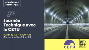 Le mardi 26 mai, le Cluster Lumière, à travers son GT Tunnels, co-oganise avec le CETU, Centre d’Etudes des Tunnels, une Journée Technique.
