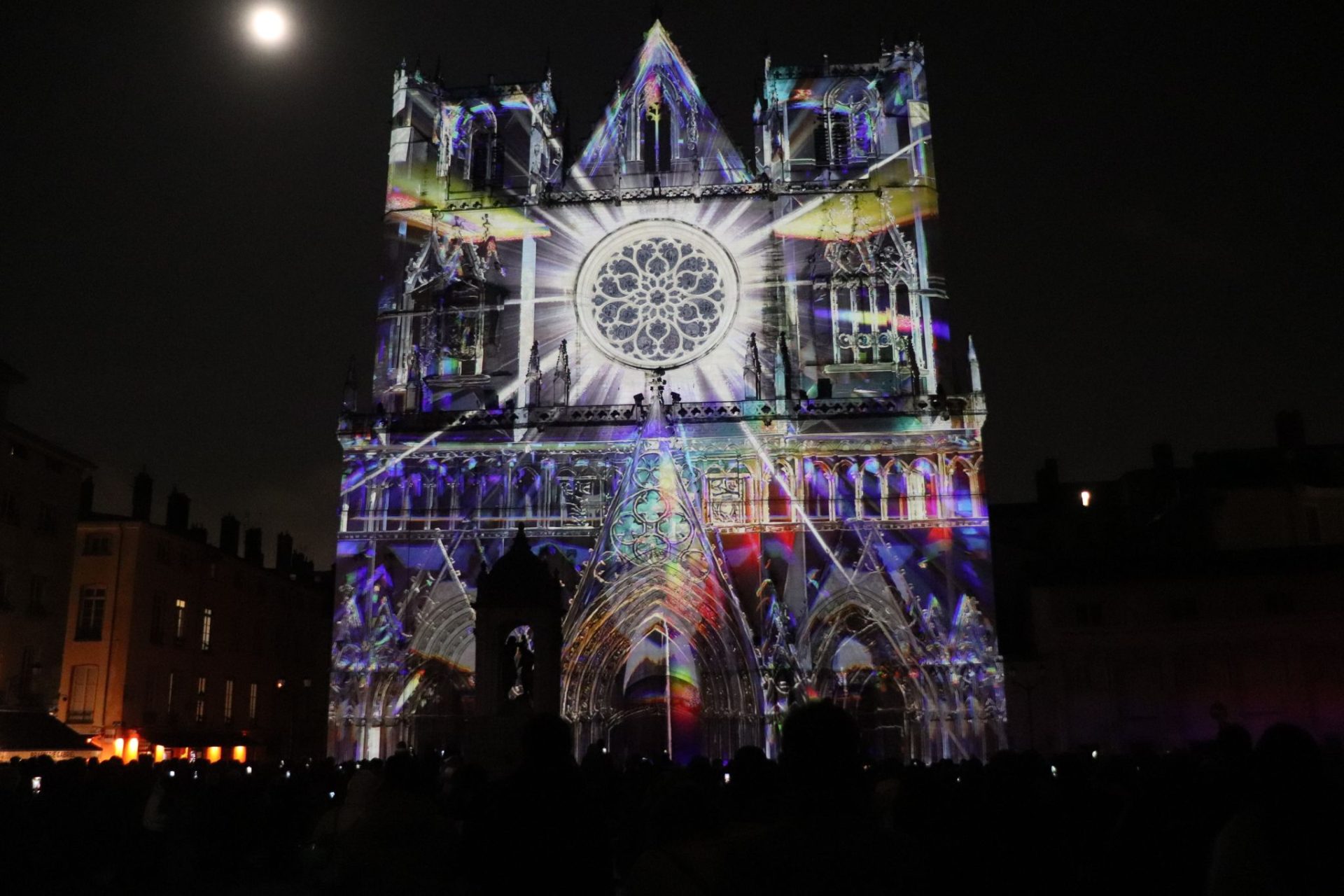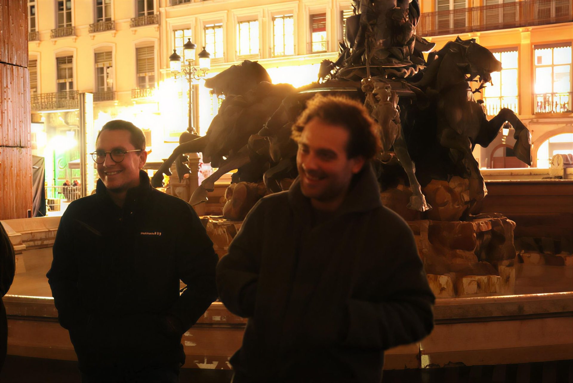 Au fil de cette promenade éclairée, quatre créations emblématiques ont été appréciées par les participants. La première, réalisée par SWING LE LAB, embellit la Basilique Notre-Dame de Fourvière avec une projection qui met à l’honneur les femmes du monde, présentée par Gilbert Coudène. La deuxième œuvre, « Lumina », illumine la Cathédrale Saint-Jean. C’est NOVELTY et Grégory Dufour, qui, en collaboration avec l’artiste Lazlo Zsolt Bordos, ont pu déployer les idées de ce dernier. La troisième œuvre, « Nouvelle vague » inondant la Gare Saint-Paul de sa lumière, nous a été racontée par Mathieu Payen et Benjamin Durand des Rencontres Audiovisuelles et par un des artistes, Panagiotis Tomaras. NOVELTY était présent de nouveau, avec Tristan Cachoz à leurs côtés pour assurer la technique. Notre voyage s’est achevé Place des Terreaux, avec la mémorable création « Le lundi, c’est Ravioli ! » de l’artiste Mathieu FELIX de TIGRELAB, épaulé d’Arnaud Douchet de NOVELTY pour le volet opérationnel.